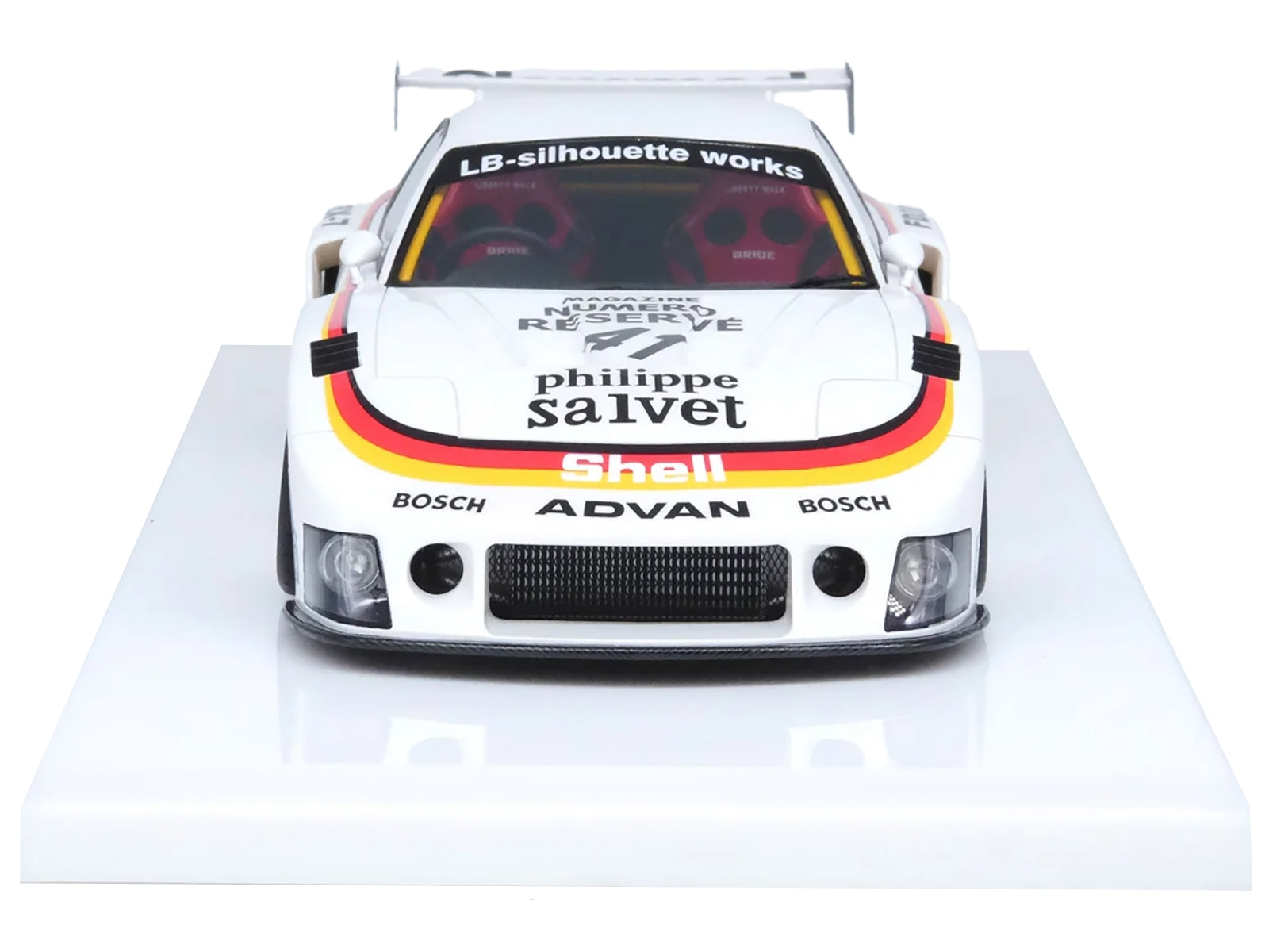 - Brand new 1/18 scale car model of Mazda RX7 (FD3S) LB-Super Silhouette RHD (Right Hand Drive) #41 White with Stripes and Graphics model car by Inno Models.